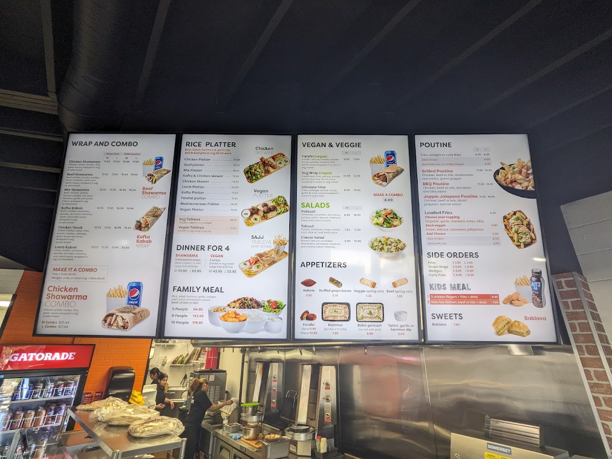 Sajj Shawarma has designed its space to welcome all types of guests. Outdoor seating allows diners to enjoy a relaxed atmosphere during sunny days, while the restaurant's layout is accommodating for university students looking for a casual study spot or groups of friends gathering for a meal. The welcoming environment is also ideal for families, with menu items suitable for kids and portion sizes that can satisfy growing appetites. All you can eat options add an extra layer of appeal for those who come hungry, making every visit a fulfilling experience.